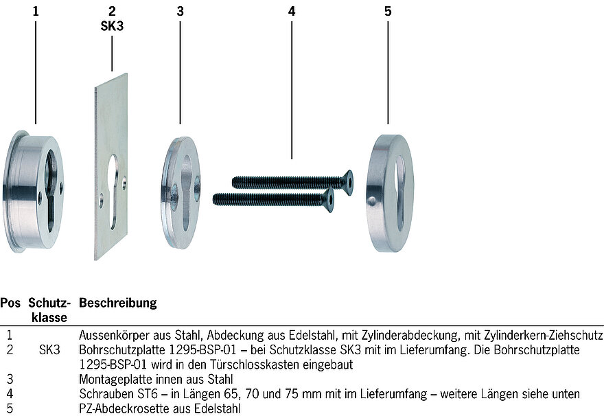 Kombination mit Türdrückermodellen DR..: Die Schutzrosetten können mit unseren Drückermodellen kombiniert werden. Die daraus resultierenden Schutzgarnituren sind dann im Schlüssel für die Einbruchsicherheit nach EN1906 mit 3 (Schutzklasse SK3) zertifiziert.