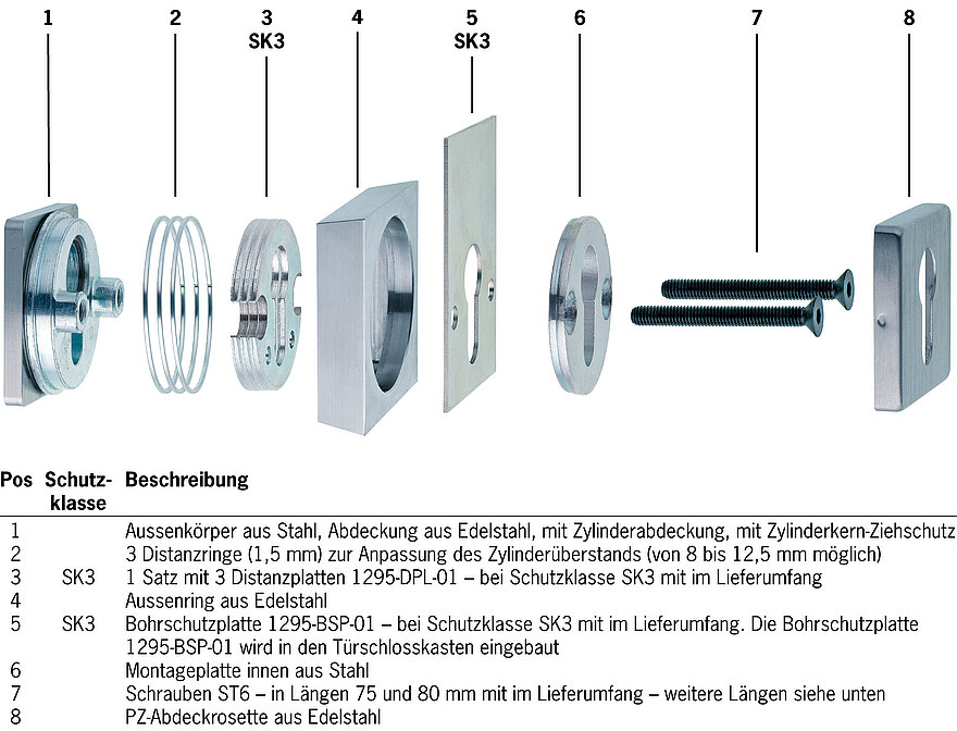 Kombination mit Türdrückermodellen DR..: Die Schutzrosetten können mit unseren Drückermodellen kombiniert werden. Die daraus resultierenden Schutzgarnituren sind dann im Schlüssel für die Einbruchsicherheit nach EN1906 mit 3 (Schutzklasse SK3) zertifiziert.