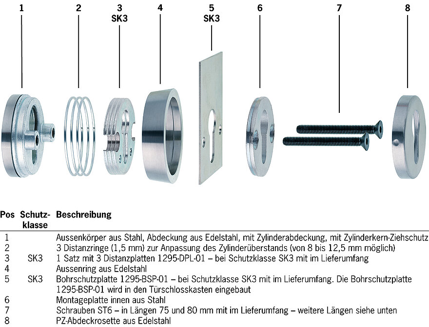 Kombination mit Türdrückermodellen DR..: Die Schutzrosetten können mit unseren Drückermodellen kombiniert werden. Die daraus resultierenden Schutzgarnituren sind dann im Schlüssel für die Einbruchsicherheit nach EN1906 mit 3 (Schutzklasse SK3) zertifiziert.