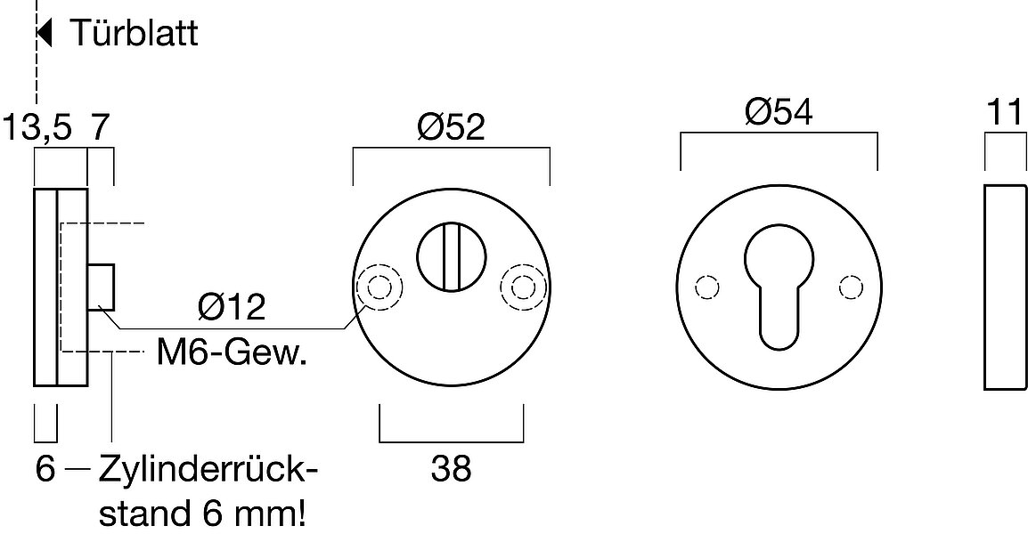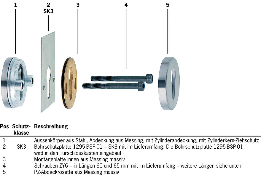 Kernziehschutzrosette - Schlitz mit 5 mm: Der Schlitz in der Kernziehschutzrosette ist serienmässig 4 mm breit. Für breitere Schlüssel ist dieser auch mit 5 mm Schlitzbreite lieferbar.