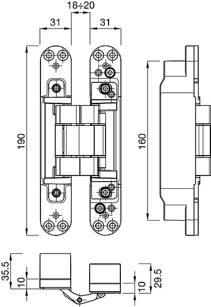 Stufenlose, unabhängige Einstellungen: Das Invisacta 311-3D Haustürband lässt sich in allen 3 Dimensionen stufenlos und ohne Aushängen des Türblatts einstellen. Sämtliche Einstellungen können voneinander unabhängig durchgeführt werden.