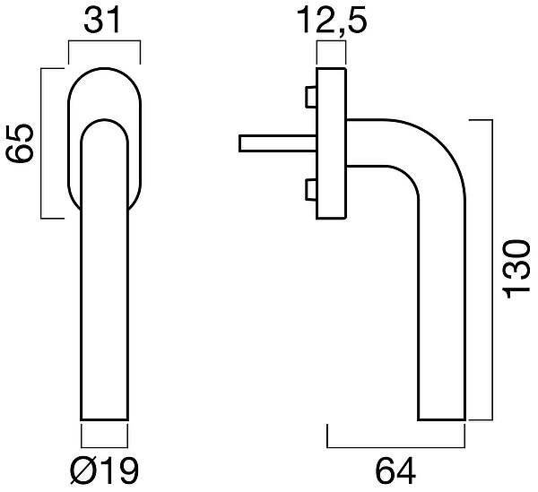 Stift: Mit 7 x 32 mm, 7 x 36 mm, 7 x 40 mm oder 7 x 50 mm Vierkantstift lieferbar.