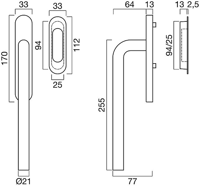 Hebeschiebetürbeschlag - Muschelgriff rund - 112 mm lang