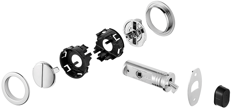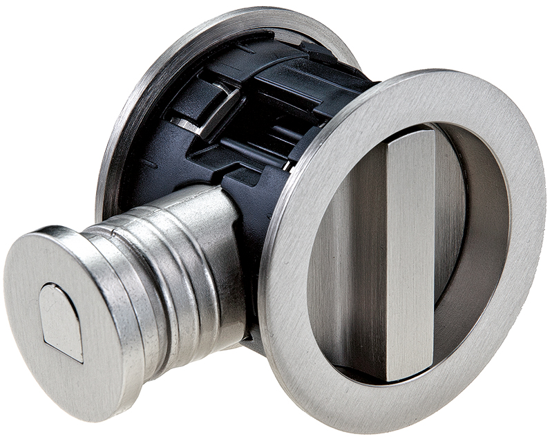 Perfekte Schließung: Das Schiebetürbeschlag-Set STB100 ist mit einem zylindri-schen Hakenschloss ausgestattet, das bei der Schließung gleichzeitig eine gleitende und drehende Bewegung ausführt. Damit wird eine perfekte Koppelung mit dem Schließblech ermöglicht.