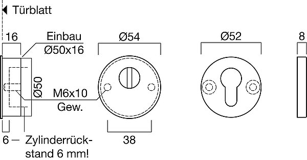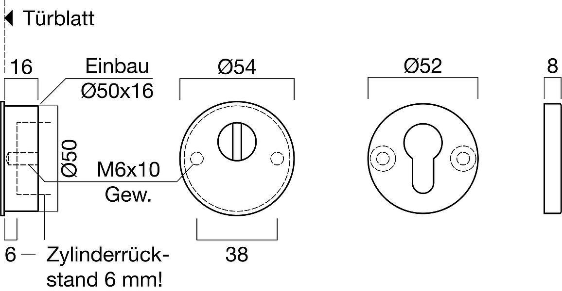 Kernziehschutzrosette - Schlitz mit 5 mm: Der Schlitz in der Kernziehschutzrosette ist serienmäßig 4 mm breit. Für breitere Schlüssel ist dieser auch mit 5 mm Schlitzbreite lieferbar.