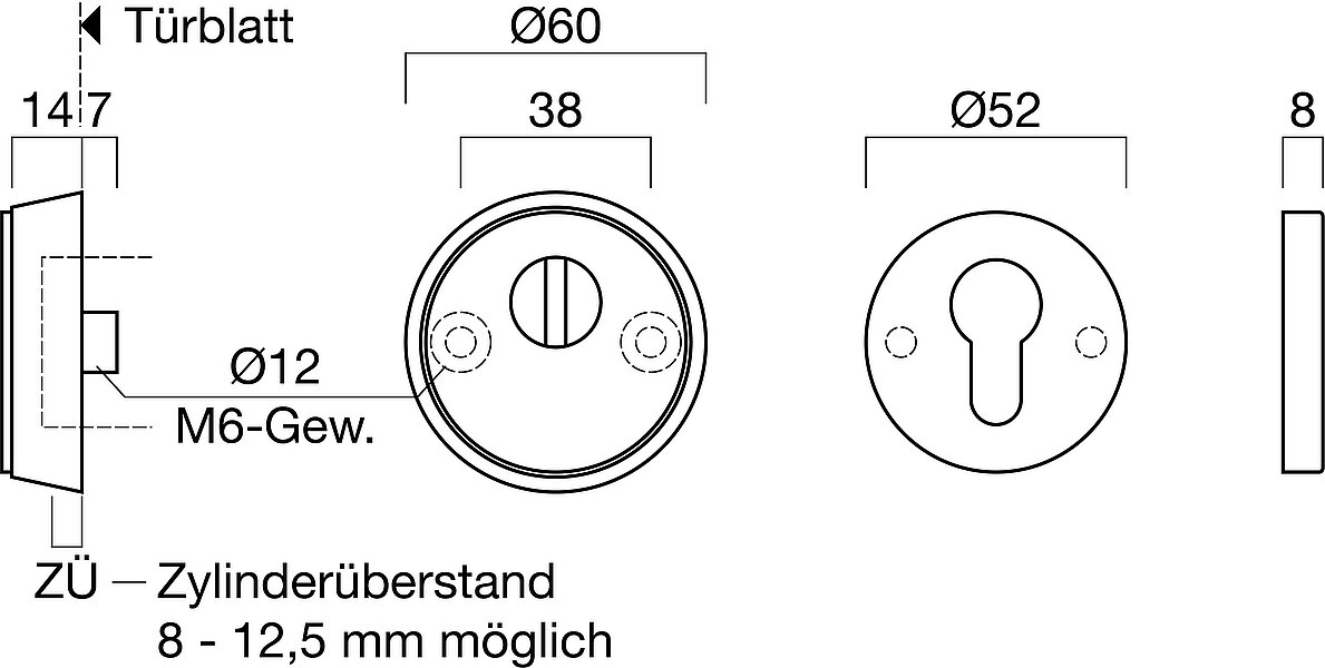 Kernziehschutzrosette - Schlitz mit 5 mm: Der Schlitz in der Kernziehschutzrosette ist serienmäßig 4 mm breit. Für breitere Schlüssel ist dieser auch mit 5 mm Schlitzbreite lieferbar.