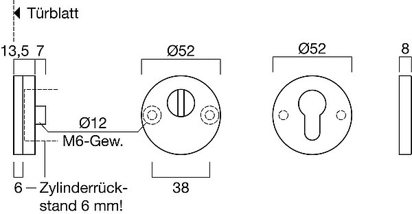 Kernziehschutzrosette - Schlitz mit 5 mm: Der Schlitz in der Kernziehschutzrosette ist serienmäßig 4 mm breit. Für breitere Schlüssel ist dieser auch mit 5 mm Schlitzbreite lieferbar.