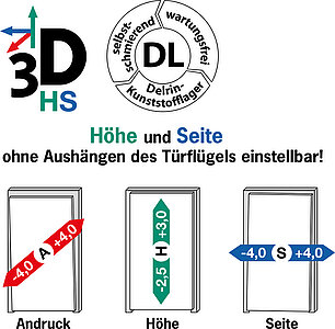 | Höheneinstellung: | von -2,5 mm bis +3 mm. Stufenlos mit Gewindeschraube H. |