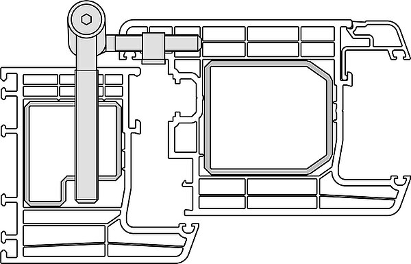 Befestigung im Türflügel: Die Befestigung im Türflügel erfolgt mit Hilfe des speziellen Tragankers ANKER-TO320-02. Bestellen Sie diesen gesondert mit.