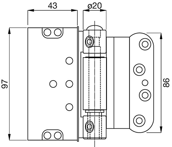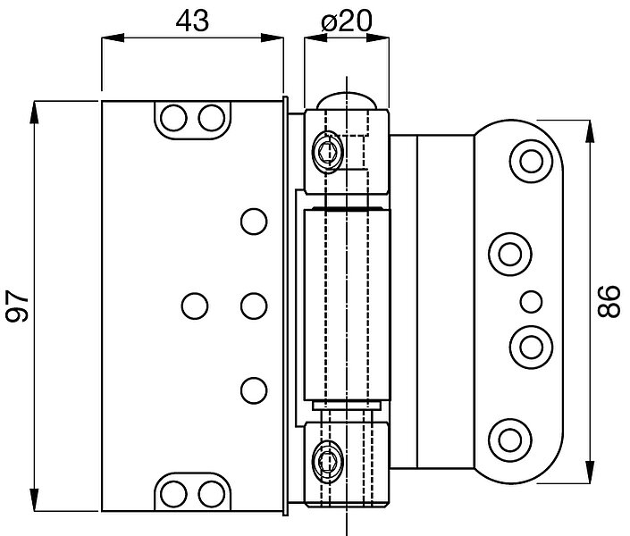 Front door hinge with hinge cup and Z-flap – up to 160 kg door weight