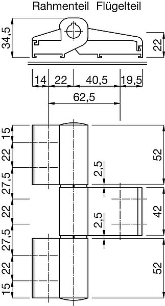 Haustürband für Holz-/Aluminiumtüren, 3-teilig, Stichmaß 62,5 mm - bis Türgewicht 150 kg