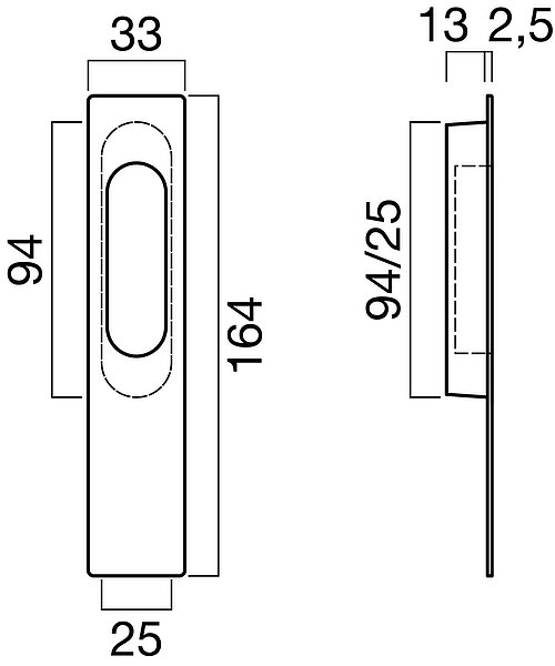 Hebeschiebetürbeschlag - Muschelgriff eckig - 164 mm lang