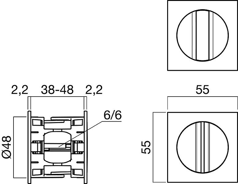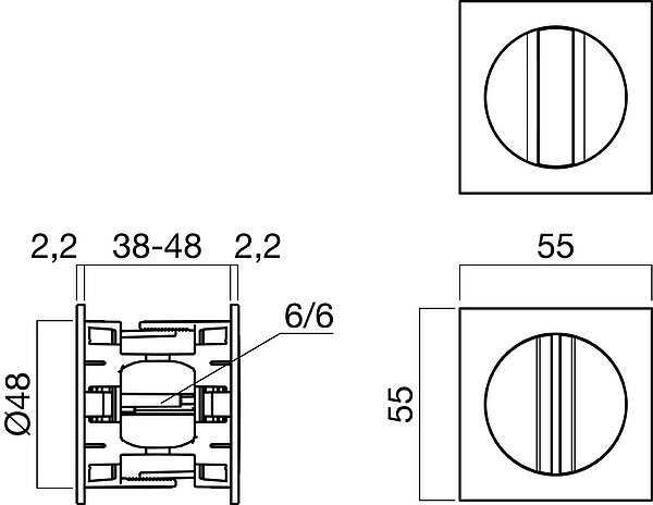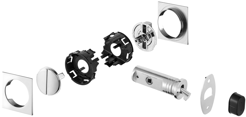 Der 6 mm Vierkantstift passt sich automatisch an die Türstärke von 38 - 48 mm an.